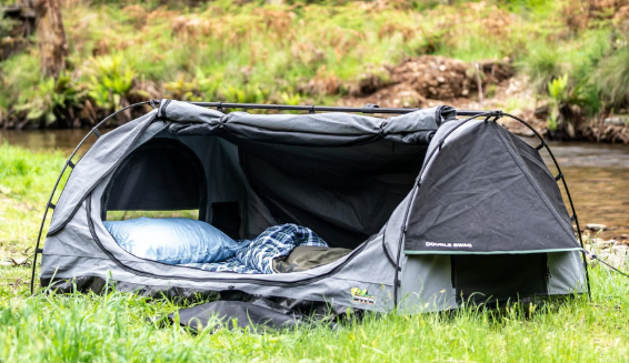 Swag, High Density 70mm Mattress, Poles, Pegs, Awning Poles, Internal Storage Pockets, External PVC Shoe Cover & Heavy Duty Canvas Bag