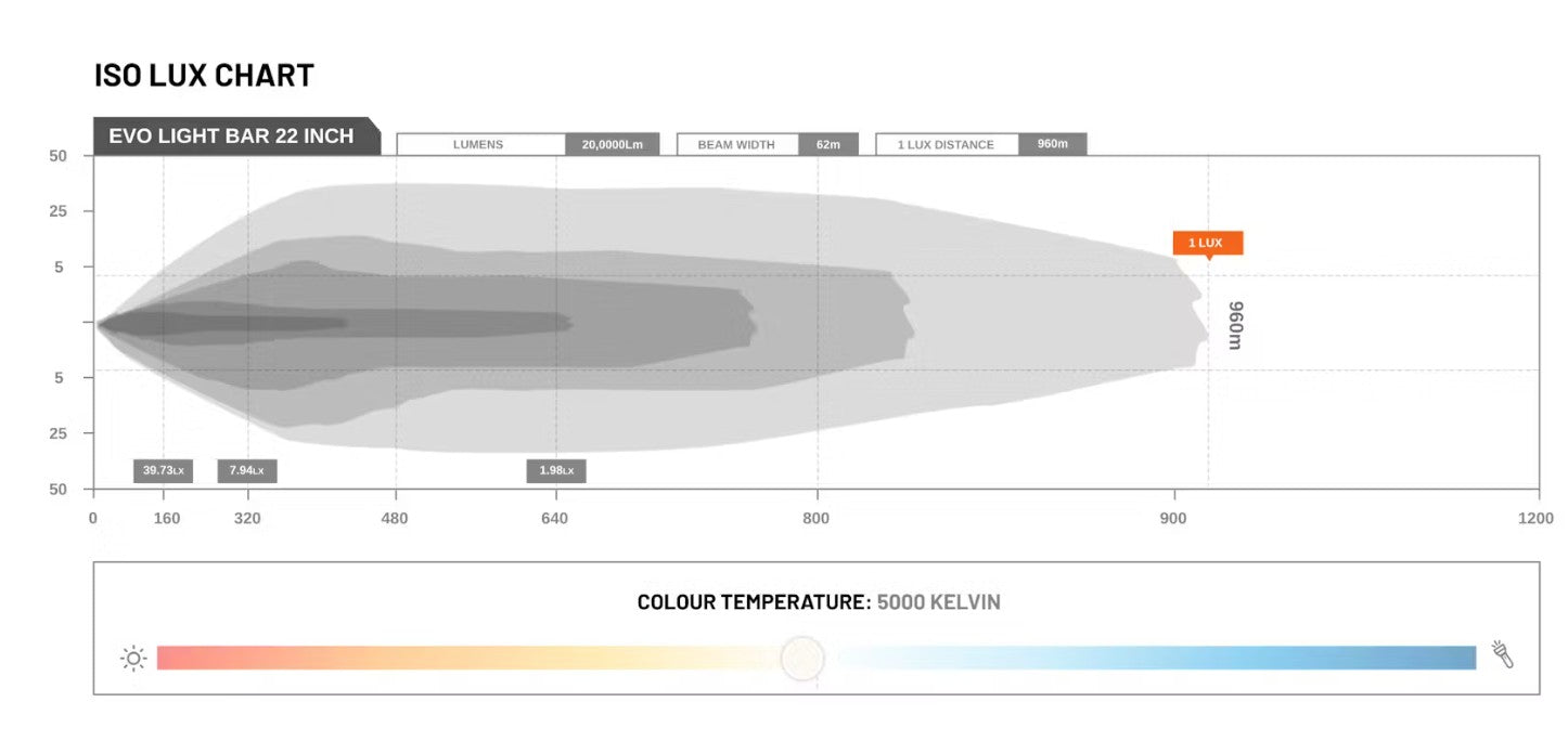 EVO Light Bar is a whole new level of explosive performance. One defined by minimalistic design, technological innovations, and a blatant refusal to compromise. With high performance, often comes high power. Requiring its own included unique harness, EVO Light Bar has a high-power draw, housing 36 CREE LEDs that throw light in a way we’ve never seen before due to updated reflector technology. 960m of light being thrown down the road from a 22" light bar? That's unheard of.