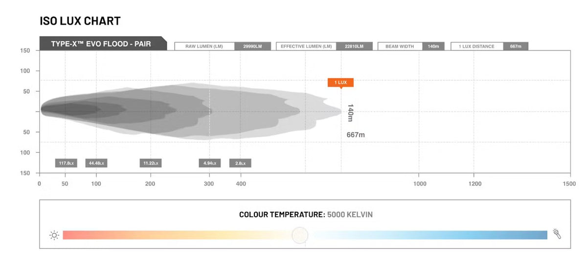 TYPE-X™ EVO has arrived in a separate dedicated flood and spot beam pattern, meaning you can mix and match, and have full control of your desired beam to suit your driving style and needs. Utilising a more efficient technology from CREE’s XP range of LED’s, TYPE-X™ EVO offers up to a staggering 1470m of light throw down the road, and up to a 140m of light spread laterally into the critical zones.