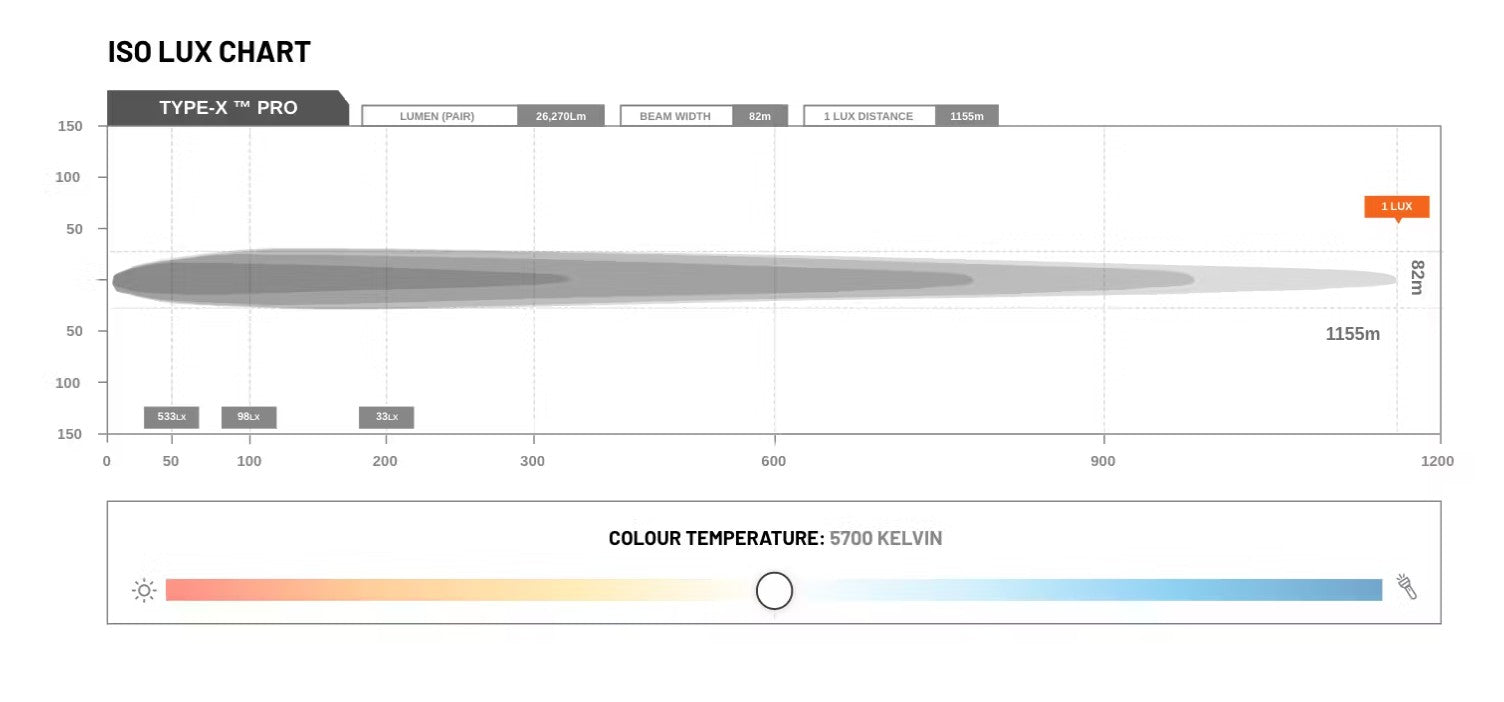 Cutting edge performance starts with cutting edge LED technology. To achieve genuine category-leading performance our Type-X™ Pro is equipped with 37 x Oslon High-Flux LEDs, selected for having the #1 highest lumen density per mm2 of any other comparable LED on the market. Compared to the two other leading spotlights brands similar offerings, the LEDs used in Type-X™ PRO have + 23% and +42% higher lumen density per mm2 in comparison. The net result is higher net light volume and unrivaled beam throw.